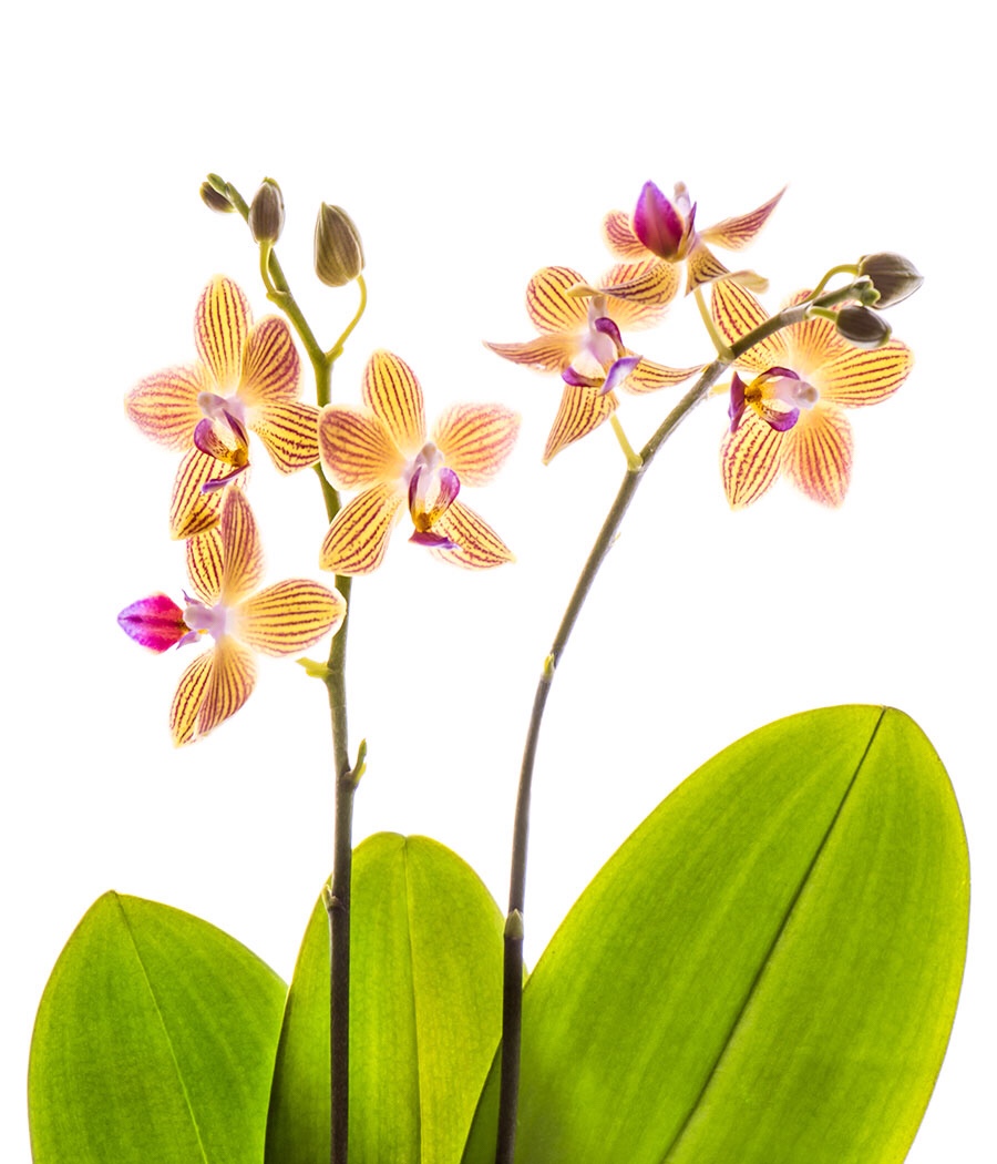 Orchids photographed on a lightbox.