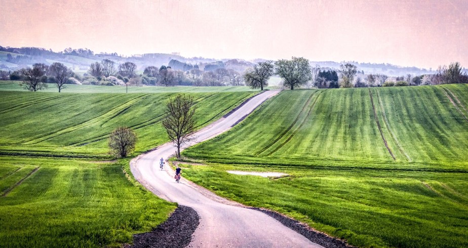 Cyclists on a country road somewhere near the Northamptonshire / Warwickshire border.