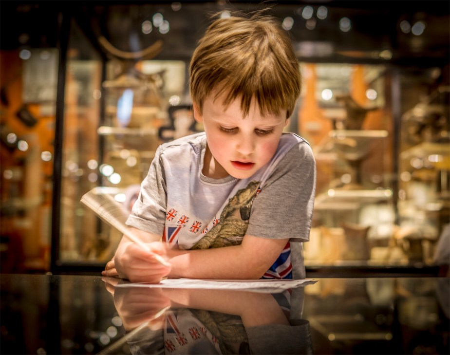 Portrait of my Grandson busy at a museum in Oxford.