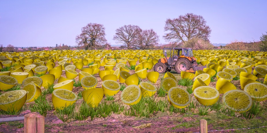 A photographic and 3D computer graphic composite inspired by the lemon-filled worlds of Russian surrealist painter Vitaly Urzhumov.