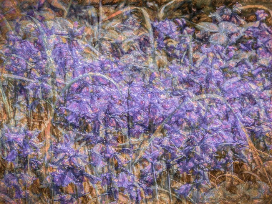 Bluebells on a roadside verge in Leicestershire. Multiple exposure plus Topaz Impression.