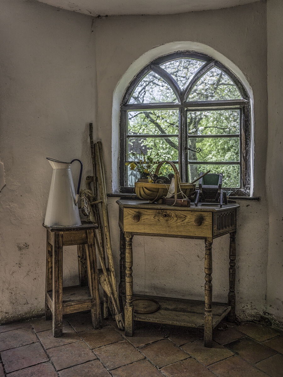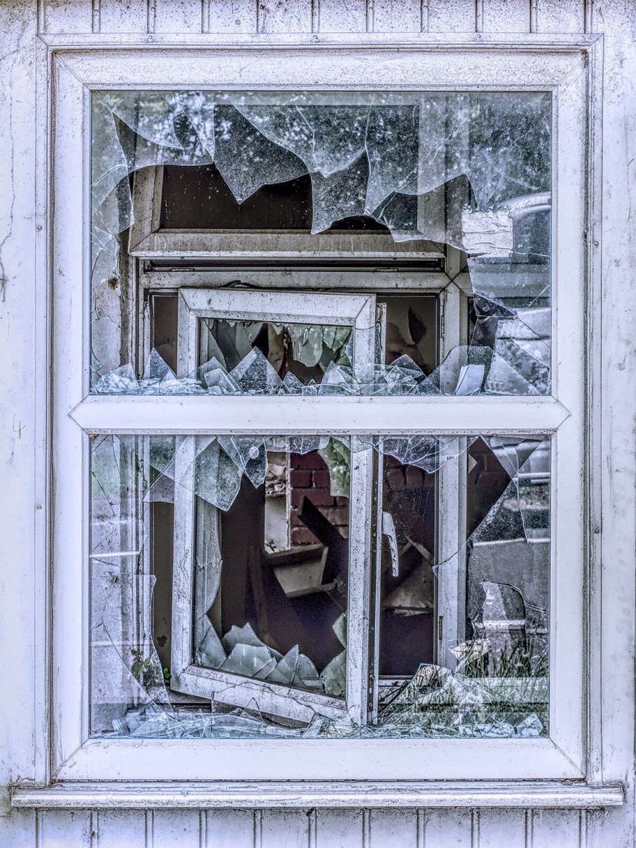 Not a double exposure but a straightforward view through the broken porch window of a derelict pub near Coventry, Warwickshire.
