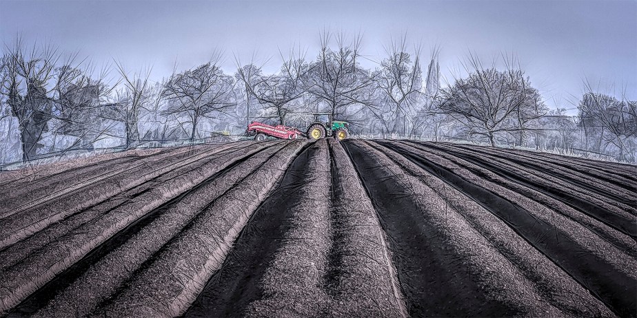 Loved the lines formed by the deep furrows in this freshly ploughed field photographed during seeding near Draycote, Warwickshire. Slight scattering effect in the post-processing treatment seemed appropriate to the theme.