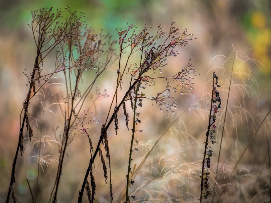Another shot of Ragwort with Foxglove seed heads. Same treatment but this time in the rain.
