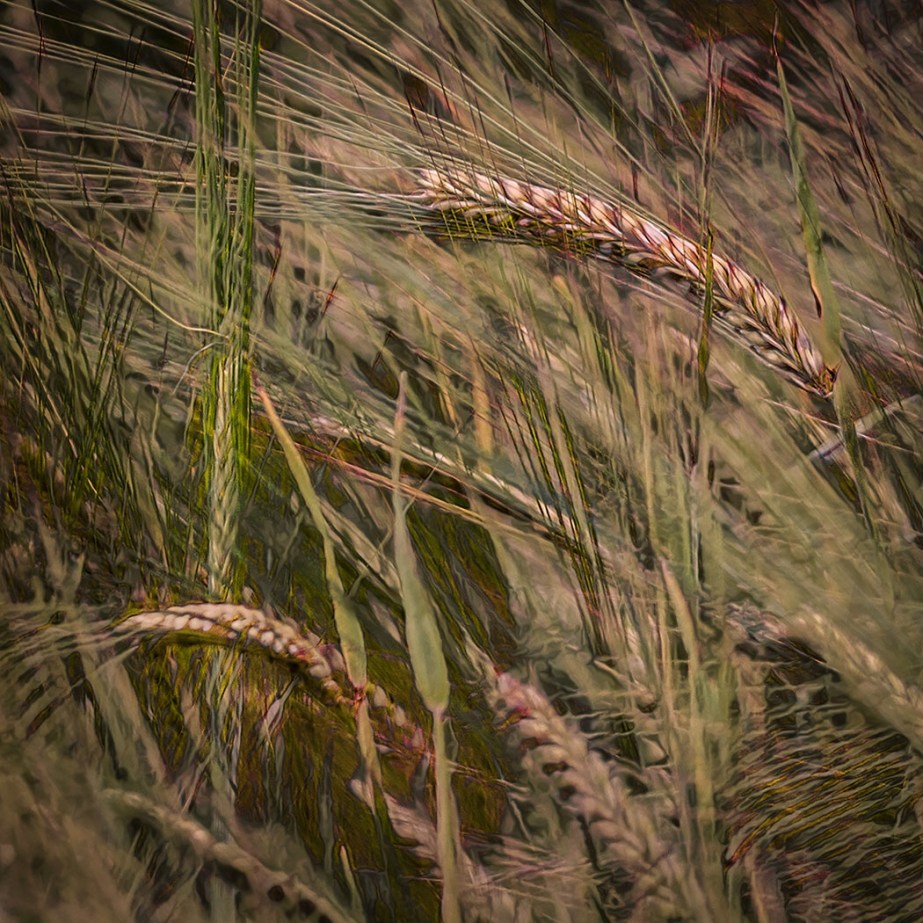 Telephoto detail from a field of barley near Dunchurch, Warwickshire.