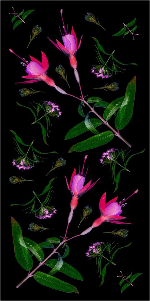 Fuchsias 2 Photography Inspired by William Morris. Photographed on a light box with luminance inverted to negative. Share this: Click to share on X (Opens in new window) X Click to share on Facebook (Opens in new window) Facebook Click to share on LinkedIn (Opens in new window) LinkedIn Click to email a link to a friend (Opens in new window) Email Like Loading...